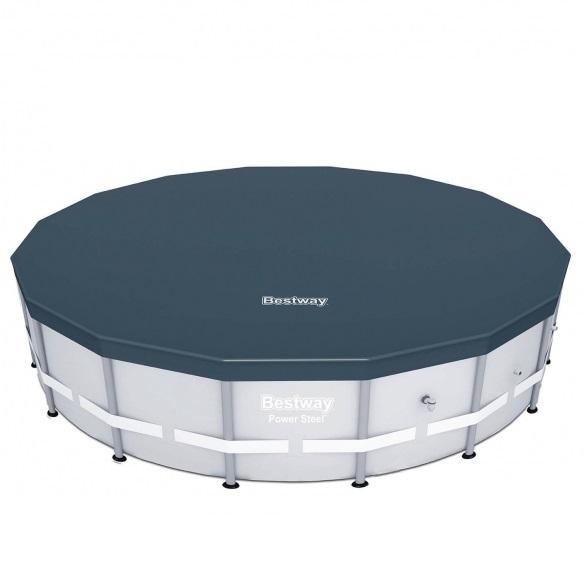 Pokrywa do okrągłych basenów stelażowych o średnicy 4.60 / 4.88 m. Wykonana jest z gęstego PVC, odpornego na promienie UV, wilgoć i środki chemiczne. Wytrzymały materiał wyrobu wyróżnia się długą żywotnością. Taka pokrywa ochroni zbiornik przed przedostaniem się liści, piasku, owadów, kurzu i opadów. Posiada otwory odprowadzające wodę, co zapobiega zbieraniu się wody na macie. Pokrywa jest łatwa w obsłudze – wystarczy naciągnąć ją na obrys niecki basenowej i zamocować specjalną liną.